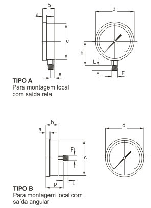 psig, Pa (e múltiplos), mmHg, cmHg e polHg.