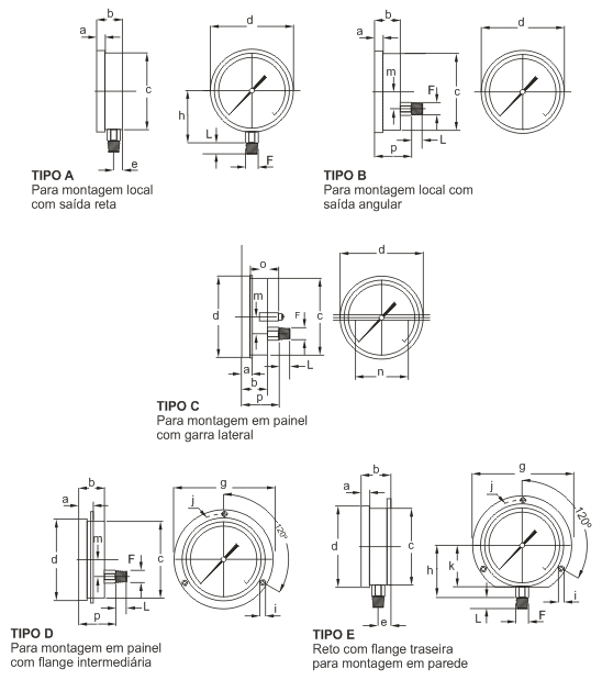 psig, Pa (e múltiplos), mmHg, cmHg e polHg.