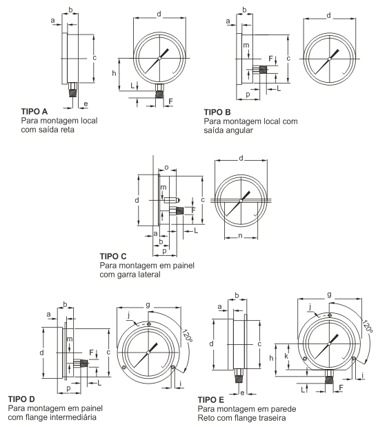 psig, Pa (e múltiplos), mmHg, cmHg e polHg.