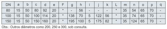 / Diâmetro: 80, 100, 150, 200, 250 e 300 |
