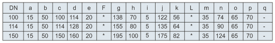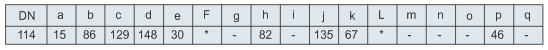 as dimensões para manômetros na tabela