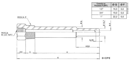 de Haste Paralela, rosqueado, com ponta reduzida. |